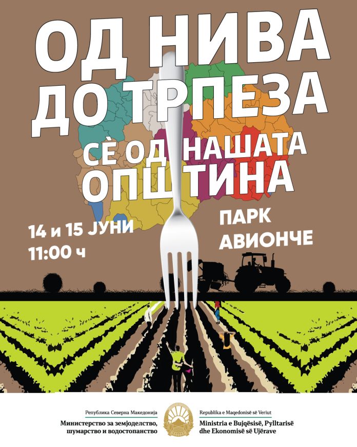 ОД НИВА ДО ТРПЕЗА – СÈ ОД НАШАТА ОПШТИНА На 14 и 15 јуни 2025 година, во 11:00 часот во Парк Авионче, Ново Лисиче – општина Аеродром, со поддршка на Министерството за земјоделство, шумарство и водостопанство, а во организација на здружението „Наша традиција, наша иднина“ ќе се одржи настанот „ОД НИВА ДО ТРПЕЗА – СÈ ОД НАШАТА ОПШТИНА”.