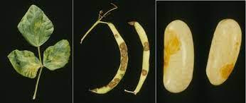 Антрахнозата ја напаѓа листовите и мешунките, предизвикувајќи темни, специфични дамки и може сериозно да го намали приносот.